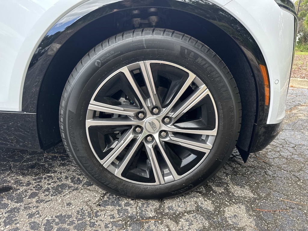 This Cadillac LYRIQ has a dependable Electric engine powering this Automatic transmission. WHEELS, 20" SPLIT 6-SPOKE ALLOY with Diamond Cut/Dark Android finish and Gloss Black aero inserts (STD), TRANSMISSION, NONE (STD), TIRES, 265/50R20 ALL-SEASON SELF-SEALING (STD).